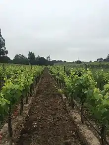 Los Carneros AVA (also known as Carneros AVA) is an American Viticultural Area which includes parts of both Sonoma and Napa counties in California, U.S.A. It is located north of San Pablo Bay. The proximity to the cool fog and breezes from the bay makes the climate in Los Carneros cooler and more moderate than the wine regions farther north in Napa Valley and Sonoma Valley. The cooler climate has made Los Carneros attractive for the cultivation of cooler climate varietals like Pinot noir and Chardonnay. Many of the grapes grown in Los Carneros are used for sparkling wine production.[3] Receiving its AVA status in 1983, the Carneros area was the first wine region in California to be defined by its climate characteristics rather than political boundaries.[4]