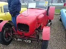 Chapman used this chassis and running gear to support a cigar-shaped body with a rounded nose. It has rudimentary cycle-type mudguards. The result was a very competitive trials car, but one also suitable for circuit racing. Chapman used the car to compete in events sponsored by the 750 Motor Club. Although Chapman built the car to compete in English Trials events, he also entered the car in track events, such as Silverstone, where he won in his class. From that point forward, Chapman concentrated on designing and constructing cars for race circuits instead of trials.