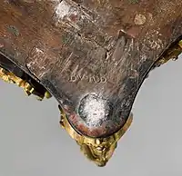 Estampille or signature mark under top of table by Bernard II van Risamburgh