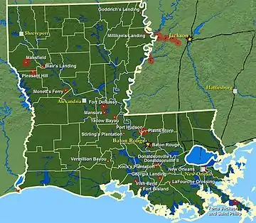 Battles in Louisiana tended to be concentrated along the major waterways, like the Red River Campaign.