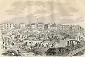 Instead of taking Louisville, Bragg left Bardstown to install Confederate Governor Richard Hawes at Frankfort. On September 26, five hundred Confederate cavalrymen rode into the area of Eighteenth and Oak, capturing fifty Union soldiers. Confederates placed pickets around Middletown on the 26th, and on the 27th their soldiers repelled Union forces from Middletown near Shelbyville Pike.[5] Southern forces reached two miles from the city, but were not numerous enough to invade it. On September 30, Confederate and Union pickets fought at Gilman's Point in St. Matthews and pushed the Confederates back through Middletown to Floyd's Fork.[6]