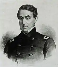 On July 15, 1861, the War Department authorized United States Navy Lieutenant William "Bull" Nelson to establish a training camp and organize a brigade of infantry. Nelson commissioned William J. Landram, a colonel of cavalry; and Theophilus T. Garrard, Thomas E. Bramlette, and Speed S. Fry colonels of infantry. Landram turned his commission over to Lieutenant Colonel Frank Wolford. When Garrard, Bramlette, and Fry established their camps at Camp Dick Robinson in Garrard County, and Wolford erected his camp near Harrodsburg, Kentucky's neutrality effectively ended.[2] Brigadier General Rousseau established a Union training camp opposite Louisville in Jeffersonville, Indiana, naming the camp after Joseph Holt. Governor Magoffin protested to Lincoln about the Union camps, but he ignored Magoffin, stating that the will of the people wanted the camps to remain in Kentucky.[3]