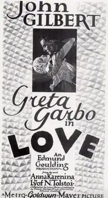 Love is a 1927 American silent drama film directed by Edmund Goulding and released by Metro-Goldwyn-Mayer. A sound version of the film was released in 1928 with a synchronized musical score with sound effects. MGM made the film to capitalize on its winning romantic team of Greta Garbo and John Gilbert who had starred in the 1926 blockbuster Flesh and the Devil.