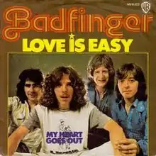 "Love Is Easy" was released on the 1974 Badfinger album, on which it was the third track. During the previous October 1973, it was released as a single in Britain (as well as in Germany, New Zealand, South Africa and Uruguay), backed with the Mike Gibbins-written track, "My Heart Goes Out" (also on the Badfinger album.) It was a commercial failure, however, not charting in the UK. A second single from Badfinger, "I Miss You", was released in America and Japan, but that single still did not garner any commercial appeal.