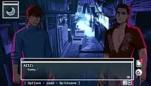 Love Shore is a cyberpunk noir visual novel developed and published by Perfect Garbage Studios. Set in the cyberpunk city of Love Shore, the game revolves around protagonists Sam and Farah, who attempt to navigate the monstrous underworld in hopes of uncovering the means to save their friends.