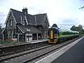 The buildings originally comprised a combined station building and station master's house, a weighbridge hut at the entrance to the goods yard, a goods shed, and stables for the horses that drew the drays to deliver goods. A waiting room, a porter's room and a lamp hut were on the opposite platform from the station building, and a signal box across the road on that side, next to the level crossing. The signal box was opened on 14 June 1896.[4] This Midland Railway Type 2b box was the oldest on the line when abolished in 2016.[5]