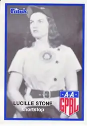 Lucille Richards (née Stone; December 26, 1925 – May 20, 2016) was an All-American Girls Professional Baseball League shortstop who played for the Racine Belles and South Bend Blue Sox during the 1946 AAGPBL season. Listed at 5' 4", 130 lb., Stone batted and threw right handed. She was dubbed ´Lou´ by her friends and teammates.[1][2]