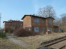 The track layouts of the two private railways were relatively less extensive, since the centres of operations of both companies was not in Uckro but in Dahme and Luckau. The DUE had only two tracks at the station building, while the NLE had five tracks with a loading track.[12] South of the tracks of the passenger operations are the connecting tracks from the main line to the branch lines and the former freight sidings of the main line.