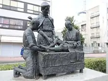 Bronze statue in front of the Almeida Memorial Hospital in Ōita