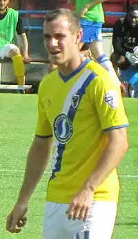 Moore was born in Gravesend, Kent but brought up in Northfleet where he attended Shears Green Junior School and played football for the Gravesham Primary Schools FA.[1] At the age of eleven he moved to Northfleet Technology College and continued to play for the Gravesham Schools FA at secondary school level.[2] At the age of fifteen he began his professional career at his local club Gravesend and Northfleet (later known as Ebbsfleet United) which at that time competed in the Conference National. Moore spent two years playing for the youth team whilst taking part in the club's Programme for Academic and Sporting Excellence, a nationwide scheme which aims to develop young footballers on the pitch whilst also ensuring they remain in higher education.[3] On 6 February 2006 he scored in a 2–0 win over Dover Athletic in the Kent Senior Cup, earning the 17-year–old special praise from first team manager Liam Daish.[3] Moore was rewarded with his first professional contract on 1 July 2006. The forward made his league debut on 15 August 2006 in a 4–1 win over Tamworth.[4] He scored his first goal in professional football on 26 August 2006, securing a 1–0 win over Forest Green Rovers.[4] He continued his good form by scoring twice more in the following two games; the first coming in a 3–1 win over Altrincham on 28 August 2006[4] and the second in a 2–2 draw with Southport on 2 September 2006. He scored 7 goals in 37 appearances for Ebbsfleet United during his debut season at the club.[5] In November 2007, Ebbsfleet United was taken over by MyFootballClub.[6] Moore further cemented his place in the first team in the 2007–08 season, making 44 league appearances and scoring 7 goals.[7] During this season, he also achieved FA Trophy success, playing in the 2008 FA Trophy Final against Torquay United, which ended as a 1–0 victory to Ebbsfleet United, on 10 May 2008 in front of a crowd of 40,186 at Wembley Stadium.[8] The 2008–09 season was Moore's last for Ebbsfleet United. He made 36 league appearances in which he scored 6 goals.[9] He scored his 20th and last league goal for Ebbsfleet United in a 2–1 win over Crawley Town on 20 November 2008.[10] At the end of the 2008–09 season, Ebbsfleet United manager Liam Daish was forced to disband the squad due to financial issues at the club which resulted in a much more restrictive playing budget for the following season.[11]