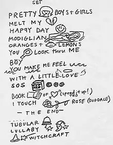 Sample of a setlist from the tour.[3]