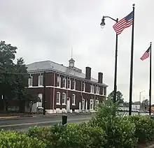Aside from the courthouse, the first buildings in Lumberton were a handful of brick structures built near the river, which included a hotel, stores, and warehouses, which were stocked by goods sent up the river from Georgetown, South Carolina.[8] The community's first school was established by Willis in 1791.[9] The town had a post office by 1796. It was formally incorporated in 1852 and granted a municipal government with a mayor and a board of commissioners.[8] The town was connected by rail with Wilmington in 1860, which reduced its reliance on river trade from Georgetown. Much of the business district was burnt down in a fire in 1870 and another in 1876.[10]