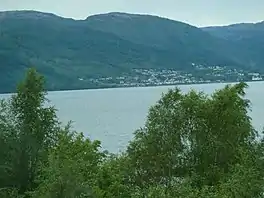 The 27.49-square-kilometre (10.61 sq mi) lake is about 25 kilometres (16 mi) long. It is the ninth-deepest lake in Norway and extends about 265 m (869 ft) below sea level and since it sits at an elevation of 49 m (161 ft), the maximum depth of the lake is 314 m (1,030 ft). This overdeepening, as well as its long and narrow shape, are characteristics of glacially-formed lakes.[2]