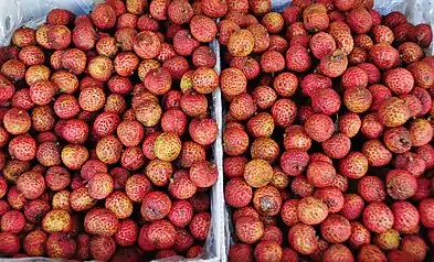 Lychee is made into wines that can be consumed fresh or a few years before serving. Lychee itself has a golden color and unique rosy flavor and lychee wines keep the subtle flavor of the berry in the wine but it is not overpowering. This wine is inherently sweet and pungent. However, additional tannin is usually added to the wine, in order to get rid of the loamy mellow tones.[3]