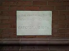 The building's cornerstone, with the inscription "In the first place I would put accuracy."