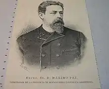 Máximo Paz (April 15, 1851 – November 7, 1931) was an Argentine politician who served as Senator, Deputy and Governor of the Province of Buenos Aires.[2]