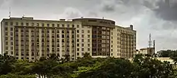 The Mövenpick Ambassador Hotel Accra is located within the city's Central Business District[8] a few kilometres away from Kotoka International Airport, Accra.[1] The hotel is located close to the Accra Financial Centre, World Trade Centre, International Conference Centre and government ministries. The hotel also has the largest swimming-pool in Accra and an emporium attached to it, with shops and other businesses.[9]