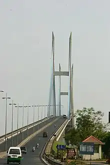 The Mỹ Thuận Bridge (Vietnamese: Cầu Mỹ Thuận) is a cable-stayed bridge over the Mekong river, connecting Cái Bè District of Tiền Giang Province with Vĩnh Long City of Vĩnh Long Province in Vietnam. It was developed in a joint venture between the governments of Australia and Vietnam. The bridge was the largest overseas assistance project undertaken by the Australian government costing A$91 million.