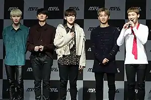 MAP6 (Korean: 맵식스) is a South Korean boy band formed in 2015, which consists of five members: Minhyuk, J.Jun, Sign, Sun and J.Vin.[1] They debuted on November 10, 2015, with the single "Storm".[2]