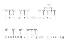 In order to make a comparison between phased array radars and MIMO radars, the relationship between transmit/receive antenna arrays and virtual arrays are discussed in several sources.[5][1][6] If the placements of the transmit and receive antenna array are expressed as two vectors and respectively, the placement vector of the virtual array is equal to the convolution of and :