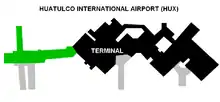 Huatulco International Airport (Spanish: Aeropuerto Internacional de Huatulco)[lower-greek 1] (IATA: HUX, ICAO: MMBT) is an international airport located in Santa María Huatulco, in the State of Oaxaca, Mexico.[2] The airport manages both domestic and international air traffic for the southern and southeastern Pacific coast of Oaxaca, and it serves as an international gateway to the Mexican tourist destination of Huatulco and the Costa Region of Oaxaca. The airport is owned by Aeropuertos del Sureste (ASUR).