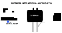 Chetumal International Airport (Spanish: Aeropuerto Internacional de Chetumal) (IATA: CTM, ICAO: MMCM) is an international airport located in Chetumal, Quintana Roo, Mexico, near the Belize–Mexico border. It serves domestic flights for Chetumal and the southern Quintana Roo region, while also supporting various executive and general aviation activities, and hosting Mexican Navy facilities. Since 2023, the airport has been operated by Grupo Olmeca-Maya-Mexica (OMM), a holding company owned by the Mexican military. In terms of passenger traffic, the airport handled 279,525 passengers in 2021, with an increase to 374,152 passengers in 2022.[1]