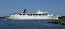 In 2002 she was sold by P&O and sailed for Holiday Kreuzfahrten as Mona Lisa until 2006, bearing a large image of the painting of the same name on her funnel.[5] On 12 May 2004, during a heavy foggy day, the Mona Lisa got stuck in the San Marco basin in Venice, in front of St Mark's square.[11] Holiday Kreuzfahrten was declared bankrupt in September 2006. Following the bankruptcy of Holiday Kreuzfahrten, Mona Lisa was briefly laid up at Pireus, Greece,[3] but in November 2006 she was chartered for use as a hotel ship in Doha, Qatar for the duration of the Asian Games. The charter to Qatar ended on 1 January 2007.[2][3]