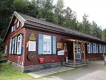 The Maaßener Gaipel is a pub catering for day trippers on the northeastern hillside of the Kranichsberg at a height of 420 m above NN, situated above the mining town of Lautenthal in the Harz Mountains of central Germany. The name goes back to the above-ground workings of the Maaßener Treibschacht or Maaßen Hoisting Shaft 51°51′49″N 10°17′25″E / 51.86361°N 10.29028°E / 51.86361; 10.29028, which was located immediately east of the inn. Gaipel is a common expression in the Upper Harz for a headframe (Schachtgebäude or Treibehaus) and goes back to the use of a horse whim which in German is a Pferdegöpel. Whims were used to transport men and materiel up and down mineshafts, for example using man engines, and also to operate water management equipment. Maaßen is shorthand for the name of the local pit which was the Grube Zweite, Dritte, Vierte, Fünfte und Sechste Maß nach der Sachsenzeche. Maaß, also variously spelt Maaß, Maas or Mas, is a unit of length for a pit field (Grubenfeld) and in mining in the Upper Harz measured 28 Lachter or 53.8 metres. The pub was built in 1924 on the initiative of the Harz Club on the terrain of the old mine shaft. But decades before the area had already become a popular destination with walkers due to its views of the mining town and the valley of the Laute.