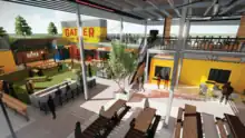 Another company, Garner Group, is also redeveloping a nearly 40 year old strip mall along Floyd Road and East-West Connector into a mixed-use, pedestrian-friendly plaza. There will be 360 luxury apartments and 42 townhomes on the 60-acre site, with the entire development occupying about 720,000 square feet. Planning Commission Chair Galt Porter, proponent of the plan, stated of the recent growth in the area: "It's probably been 15 to 20 years since there's been a market rate development of apartments anywhere close to this...you have to go to Smyrna to get something, or you have to go out all the way into Powder Springs to get something. There's just nothing in this area."[43] The project was approved by the Cobb County Board of Commissioners on October 21, 2020.[44]