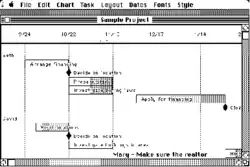 MacProject was a project management and scheduling business application released along with the first Apple Macintosh systems in 1984. MacProject was one of the first major business tools for the Macintosh which enabled users to calculate the "critical path" to completion and estimate costs in money and time. If a project deadline was missed or if available resources changed, MacProject recalculated everything automatically.