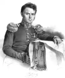 Maciej Rybiński (Polish pronunciation: [ˈmat͡ɕej rɨˈbiɲskʲi]; 24 February 1784 in Slavuta in Wołyń, 17 January 1874 in Paris), Polish general, last chief of State of November Uprising. He was a successful artillery commander of the Napoleonic wars commanding in Prince Piatkowski's VIII Corps of the Grandee Arme in Napoleon's invasion of Russia.
