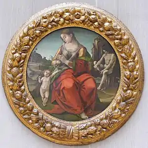 Madonna and Child is a tempera on panel tondo painting by Luca Signorelli, created c. 1492–1493, now in the Alte Pinakothek in Munich. The rocky landscape in the background shows the influence of Leonardo da Vinci, whilst to the right is a nude seated on a rock, referencing the marble Spinario, which at that date was already in the Uffizi in Florence.[1]