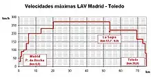 The LAV Madrid-Toledo is a Spanish high-speed rail line that connects the cities of Madrid and Toledo, a distance of approximately 74 kilometres (46 mi).