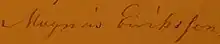 In his attack on speculative theology, and especially on Martensen's, Eiríksson thought he had an ally in Søren Kierkegaard and Kierkegaard's Concluding Unscientific Postscript (1846) supported him in this claim. Kierkegaard, however, vigorously protested against this "unauthorized acknowledgment" of his writings by "that raging Roland" and accused Eiríksson of attributing to him motives of which there is not a trace in the book.[6] Regarding Eiríksson's efforts to get Martensen dismissed, Kierkegaard comments: "And with the violence and force of the Devil he has involved my 'Concluding Unscientific Postscript' in his ... campaign. ... I do not know either whether M.E. has read the book. But if he has read it, I do know that he has absolutely, mendaciously and presumptuously misunderstood it" [7] In 1850 Eiríksson published pseudonymously [Theophilus Nicolaus] his book Er Troen et Paradox og 'i Kraft af det Absurde'? [Is Faith a Paradox and 'by Virtue of the Absurd'?] where he criticized Kierkegaard's account of faith. Eiríksson declared that faith must not be made into a paradox, for "when faith is genuine and strong, it has its firm base and deep root in the immediate intellectual faculty in man, which we call reason."[8] Faith understood as a paradox “annuls and destroys all independent thought.” [9] In his (albeit unpublished) answer to Theophilus Nicolaus, alias Eiríksson, Kierkegaard claims that Eiríksson has completely misunderstood his works and quite overlooked their main concern. In his zeal to prove that faith was not in any way a paradox, Eiríksson – according to Kierkegaard – had lost Christianity: “Both the paradox and Christianity, jointly and separately, vanished completely”.[10] Therefore, instead of inviting Kierkegaard to "take up that matter of the paradox" again, Eiríksson should himself first take up Christianity which, in his zeal, he had lost.[11]