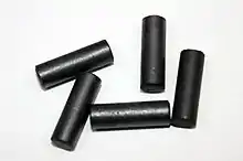 Most commonly made of ferrite or powdered iron, and used in radios especially for tuning an inductor. The coil is wound around the rod, or a coil form with the rod inside. Moving the rod in or out of the coil changes the flux through the coil, and can be used to adjust the inductance. Often the rod is threaded to allow adjustment with a screwdriver. In radio circuits, a blob of wax or resin is used once the inductor has been tuned to prevent the core from moving.