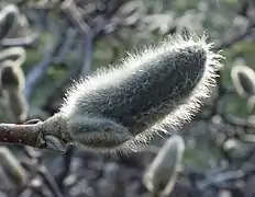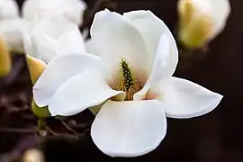 Magnolia × soulangeana (Magnolia denudata × Magnolia liliiflora), the saucer magnolia or sometimes the tulip tree,[1][2][lower-alpha 1] is a hybrid flowering plant in the genus Magnolia and family Magnoliaceae. It is a deciduous tree with large, early-blooming flowers in various shades of white, pink, and purple. It is one of the most commonly used magnolias in horticulture, being widely planted in the British Isles, especially in the south of England; and in the United States, especially the east and west coasts.[3]