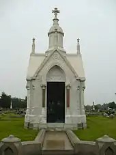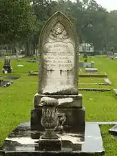 Magnolia Cemetery is a historic city cemetery located in Mobile, Alabama. Filled with many elaborate Victorian-era monuments, it spans more than 100 acres (40 ha).[3] It served as Mobile's primary, and almost exclusive, burial place during the 19th century.[3] It is the final resting place for many of Mobile's 19th- and early 20th-century citizens. The cemetery is roughly bounded by Frye Street to the north, Gayle Street to the east, and Ann Street to the west.[4] Virginia Street originally formed the southern border before the cemetery was expanded and now cuts east–west through the center of the cemetery.[4] Magnolia contains more than 80,000 burials and remains an active, though very limited, burial site today.[3][5]
