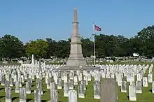 The Confederate Rest section was added on November 25, 1861 for Confederate soldiers.[7] It was initially called Soldiers Rest.[7] The Mobile National Cemetery annex was established immediately after the war, on May 11, 1866, when the city donated 3 acres (1.2 ha) to the United States government for use as a National Cemetery.[8] The cemetery as a whole was renamed Magnolia Cemetery on January 15, 1867.[3]