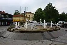 Magnolia Square (Macedonian: Плоштад Магнолија, romanized: Ploštad Magnolija) is a public space and a town square of the City of Bitola, located near the Clock Tower.[1] Around the square are old houses from the Macedonian and Ottoman architecture that are purchased from various companies, firms and coffee bars. Bitola, which was a major cultural center[2] in the Ottoman Empire has very interesting buildings from the Turks from which many on Main Street and Magnolia Square. Also there is an art gallery "Magaza" and the newly built "Glass Building". Bitola in cooperation with the Government of Macedonia made the monument The Founder of Heraclea Statue[3] that is 8.5m high and around it a fountain with the Vergina Sun on it, and benches for sitting and resting.
