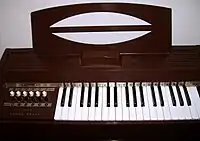 In 1958, Magnus joined with television salesman Eugene Tracey, and their company went on to sell millions of inexpensive electric chord organs and song books[7][8] until the late 1970s under the name Magnus Organ Corporation. Early Magnus Chord Organs were either laptop or tabletop models, with some of the later models having integrated legs and a lighted music stand.[9] At its peak, Magnus employed over 1,800 workers in Linden, New Jersey, including a "mother's shift" during school hours and a "work release" program for non-violent inmates of the nearby Rahway State Prison.