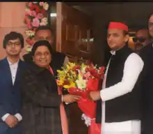 - ↑ "Akhilesh tweets alliance 'logo' made by supporter". The Indian Express. 20 March 2019. Retrieved 12 May 2019.