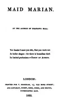 Maid Marian is a novella by Thomas Love Peacock, his fourth long work of fiction, published in 1822.[1]