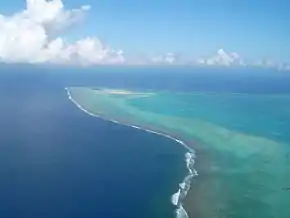 Maina is one of 22 islands in the Aitutaki atoll of the Cook Islands. It is located at the southwestern extreme of Aitutaki Lagoon, five kilometres to the southwest of the main island of Aitutaki. The island is a sand cay 710m long and up to 310m wide.[1] In front of Maina island stands a sandbar known as "Honeymoon Island"[2] named after a Canadian couple who decided to get married here.