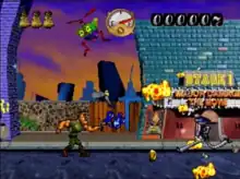 Major Damage is an unreleased run and gun video game that was in development by Capcom Digital Studios and planned to be published by Capcom on a scheduled Q1 1997 release date for the PlayStation and Sega Saturn.[1][2][3][4] Taking control of the titular protagonist of the game, players traverse through multiple stages by fighting against enemies. The title was first showcased to the public in 1996 and was one of the several projects under development by the US development division of Capcom, however it would eventually be left abandoned due to various factors. Despite never being officially released to the public by Capcom after its cancellation, two playable ISO image builds of the game have since been leaked online.[5][6][7]