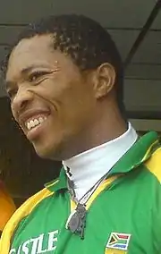 Makhaya Ntini OIS (born 6 July 1977) is a South African former professional cricketer, who played all forms of the game. He was the first black player to play for the South African national cricket team.[1] Ntini was a member of the South Africa team that won the 1998 ICC KnockOut Trophy, the only ICC trophy the country has won to date.