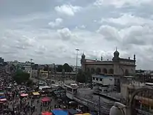 Makkah Masjid or Mecca Masjid, is a congregational mosque in Hyderabad, India. It is the largest mosque in the city,[2] and one of the largest mosques in the country, with a capacity of 10,000 people.[3] The mosque was built during the 17th century, and is a state-protected monument. It serves as the primary mosque for the Old City of Hyderabad,[4] and is located close to the historic landmarks of Charminar, Chowmahalla Palace and Laad Bazaar.
