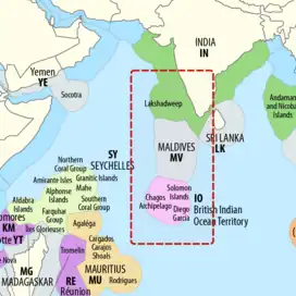 India, including Lakshadweep, became independent in 1947. The Maldives became independent in 1965. The UK split administration of the Chagos Archipelago from that of Mauritius in 1965, three years prior to Mauritian independence. In the late 1960s, the UK government leased Diego Garcia to the United States, which turned it into a naval base. The Chagossians were expelled from the islands and resettled in Mauritius, the Seychelles, and the UK. Mauritius still contests the UK's sovereignty over the islands, and the Chagossians continue to contest the legality of their expulsion and are seeking to return home.