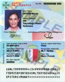 Maltese identity cards are issued to Maltese citizens.[2] They can be used as a travel document when visiting countries in the European Union and the European Economic Area.