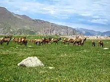 • Elk, Cervus elaphus, montane, and subalpine forests, meadows, tundra, abundant