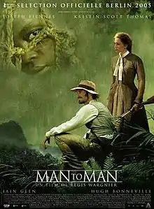 Man to Man is a 2005 historical drama film directed by Régis Wargnier and starring Joseph Fiennes, Kristin Scott Thomas , and Iain Glen. The screenplay concerns a man in a team of Victorian scientists conducting research in Africa, who begins to have doubts about the human cost of their mission. It was scripted by William Boyd.